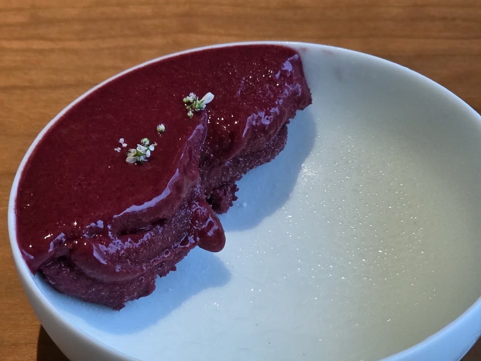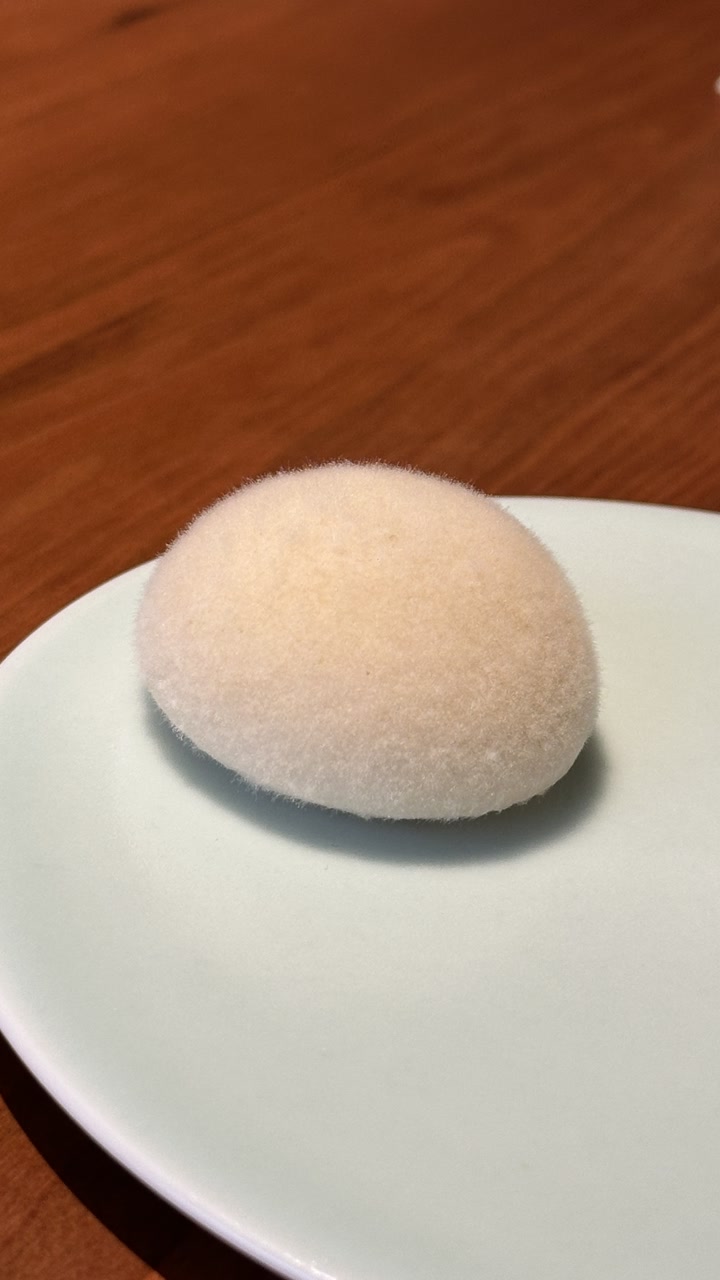 생선과 고기류 메인 요리가 지나고 가장 인상 깊었던 건 ‘곰팡이 떡’이었습니다. 식용 곰팡이를 피운 떡이라는데, 표면이 솜털처럼 보송보송해서 보는 맛과 식감 모두 귀여웠습니다.