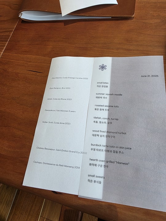 방문일은 2025년 6월 21일, 모수가 자리를 옮겨 재개장한 지 얼마 되지 않았을 때였습니다. 안성재 셰프님의 요리를 맛볼 수 있다는 기대감으로 가득 찼던 그날의 기억을 기록합니다.