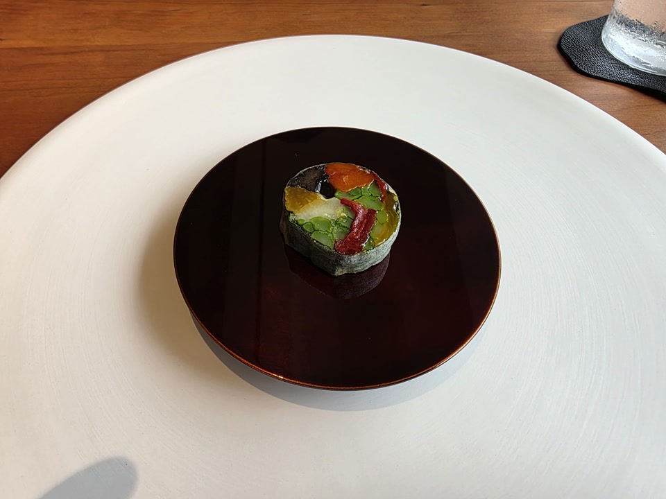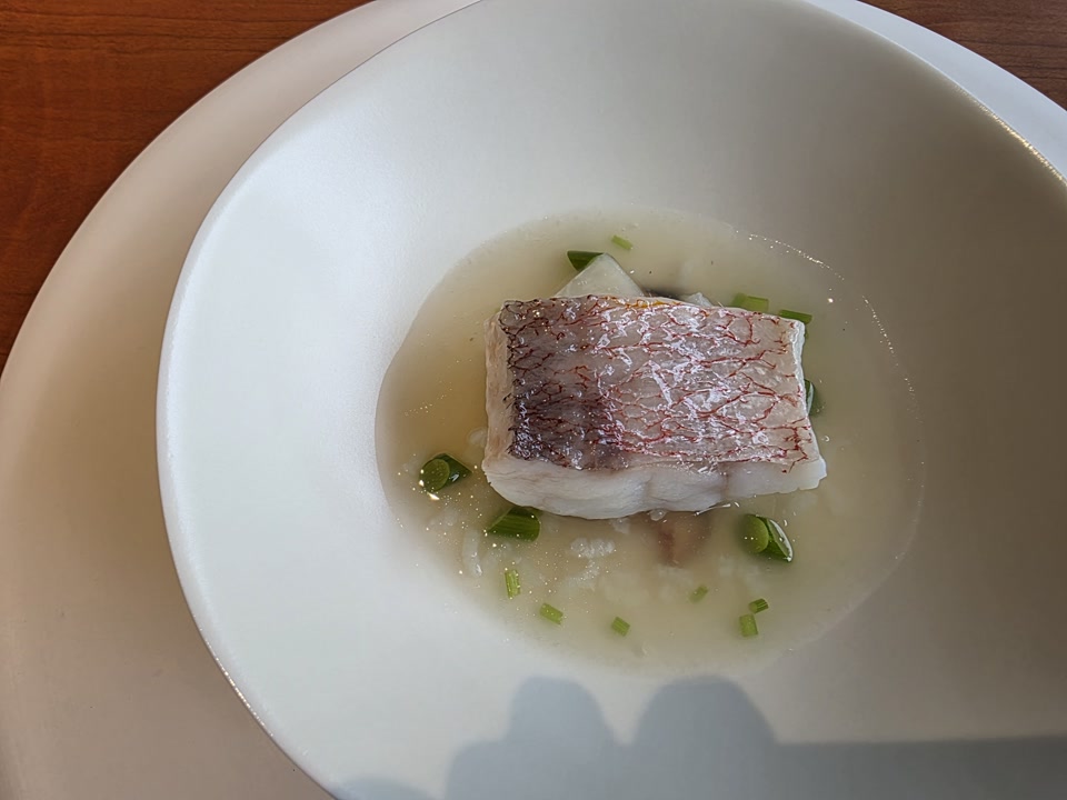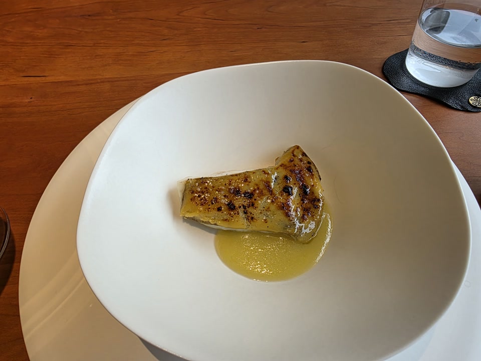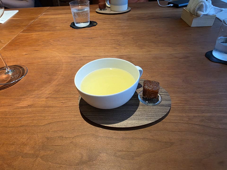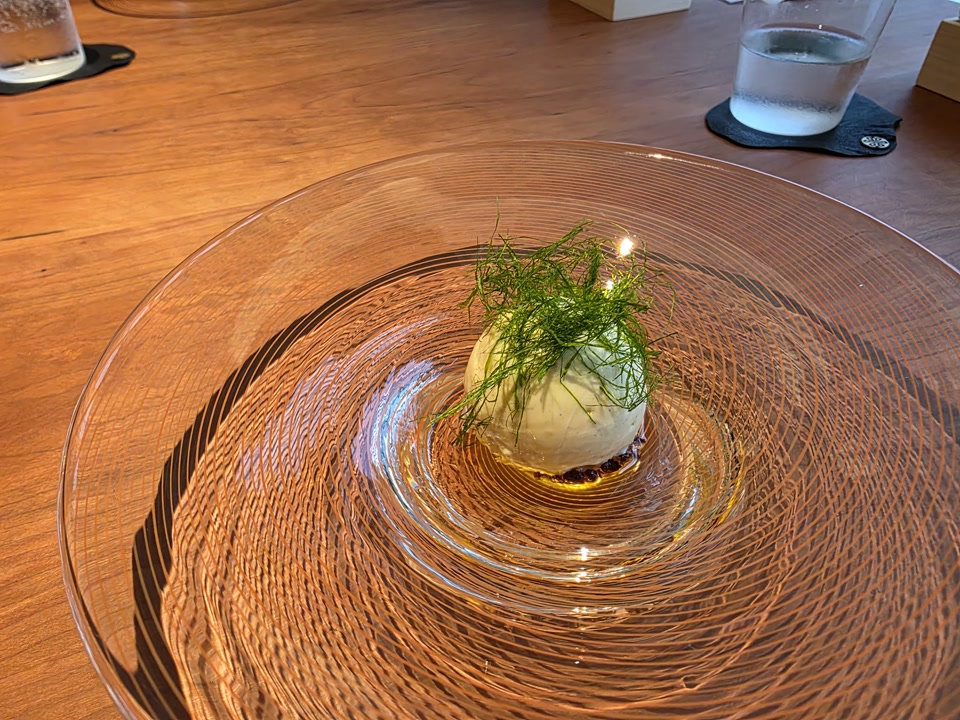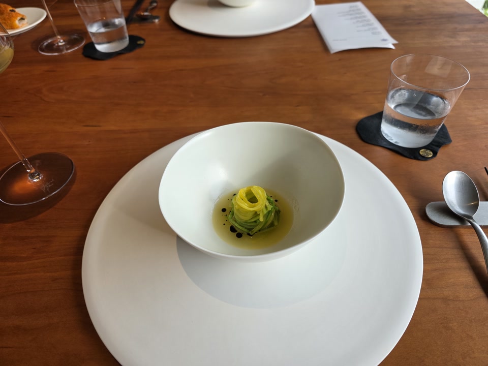사실 저는 모수의 명물인 ‘도토리 트러플 국수’를 기대하고 갔습니다. 그런데 메뉴가 바뀌었는지 애호박 국수가 나오더군요. 나중에 알고 보니 며칠 뒤 방문한 지인들은 도토리 국수를 먹었다고 해서 더 아쉬웠습니다. 아마 당일 재료 수급 문제였던 것 같은데, 맛은 나쁘지 않았지만 기대가 커서인지 이 코스는 조금 실망스러웠습니다.