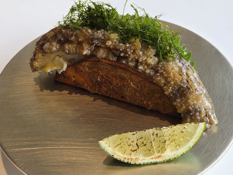 모수의 시그니처, 전복 타코입니다. 쫄깃한 전복의 식감, 바삭한 타코 쉘, 그리고 감태의 바다 향까지… “역시 모수다"라는 말이 절로 나오는 맛이었습니다.