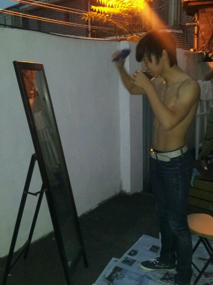 군대 가기 일주일 전 군대 가기 일주일 전 스튜디오 뒤뜰에서 머리 자르는 모습